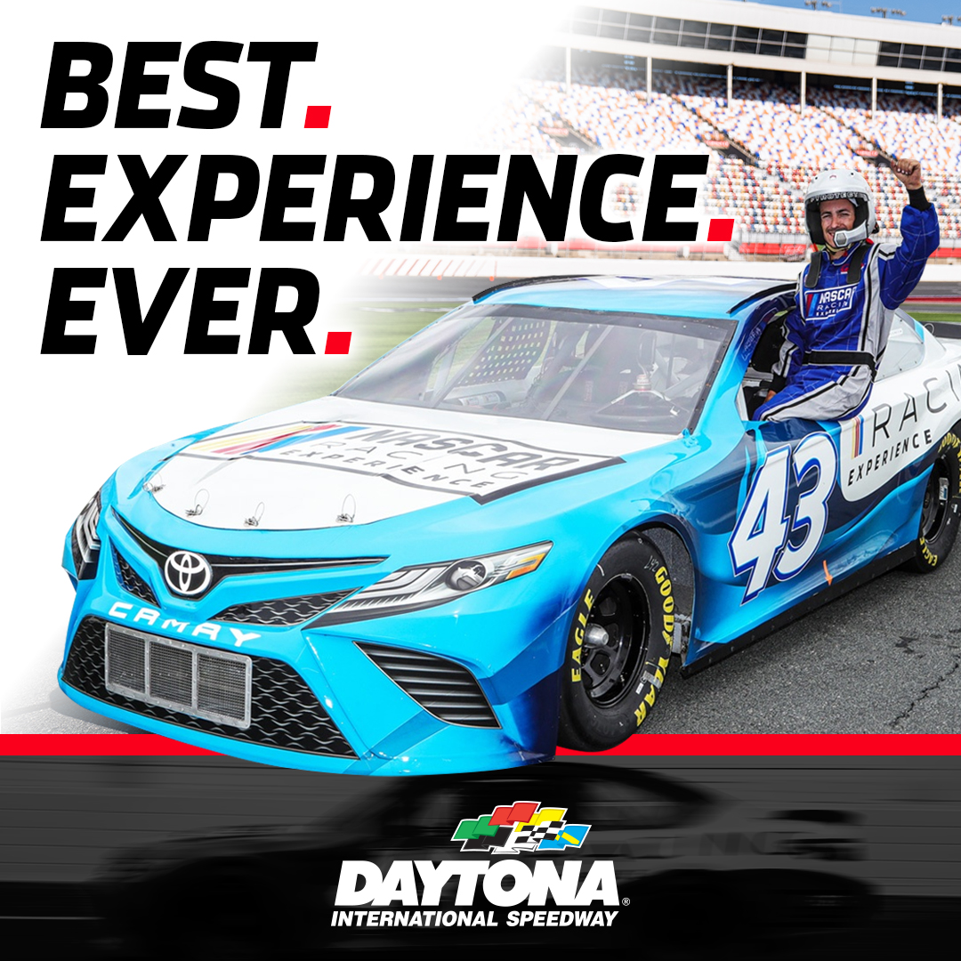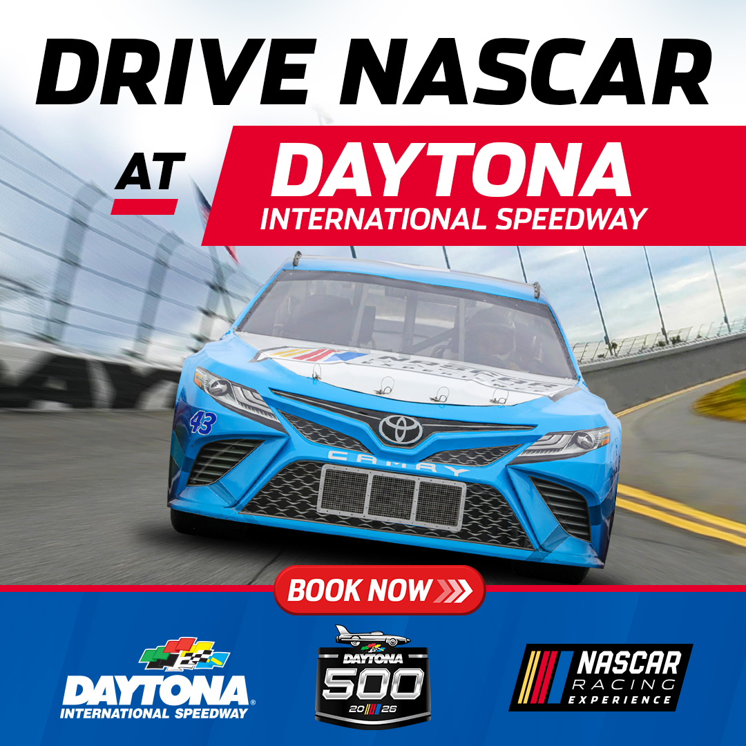 Best. Experience. Ever. Experience the thrill of driving a real NASCAR race car at NASCAR Racing Experience, at Daytona International Speedway. You can drive a NASCAR race car by yourself on the famous Daytona International Speedway- home of the Daytona 500, the most prestigious race in NASCAR. Daytona International Speedway features the large primary 2.5-mile tri-oval speedway with 31 degrees of banking in the turns. Â Book this once-in-a-lifetime NASCAR experience at Daytona International Speedway. Limited Space available. Â