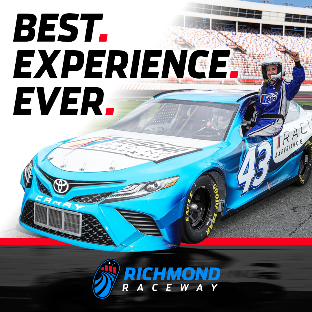 Best. Experience. Ever.  Experience the thrill of driving a real NASCAR race car on the Richmond Raceway, a 0.75 miles, D-shaped, asphalt race track with 14 degrees banking in the turns. After a drivers meeting with training and instruction, youâll set off for timed racing sessions, solo in the car. No lead car, no instructor by your sideâjust you, the track, and one-on-one guidance from a spotter over in-car radio. Limited Space is available.  SAVE up to 45% Today! Â